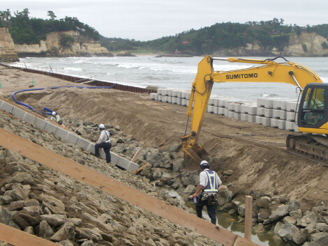 道路、橋梁、上下水道など、地域社会のインフラを整備し、日々の暮らしの基礎を守り続けるとともに、河川や海岸保全を通じて防災に貢献します。