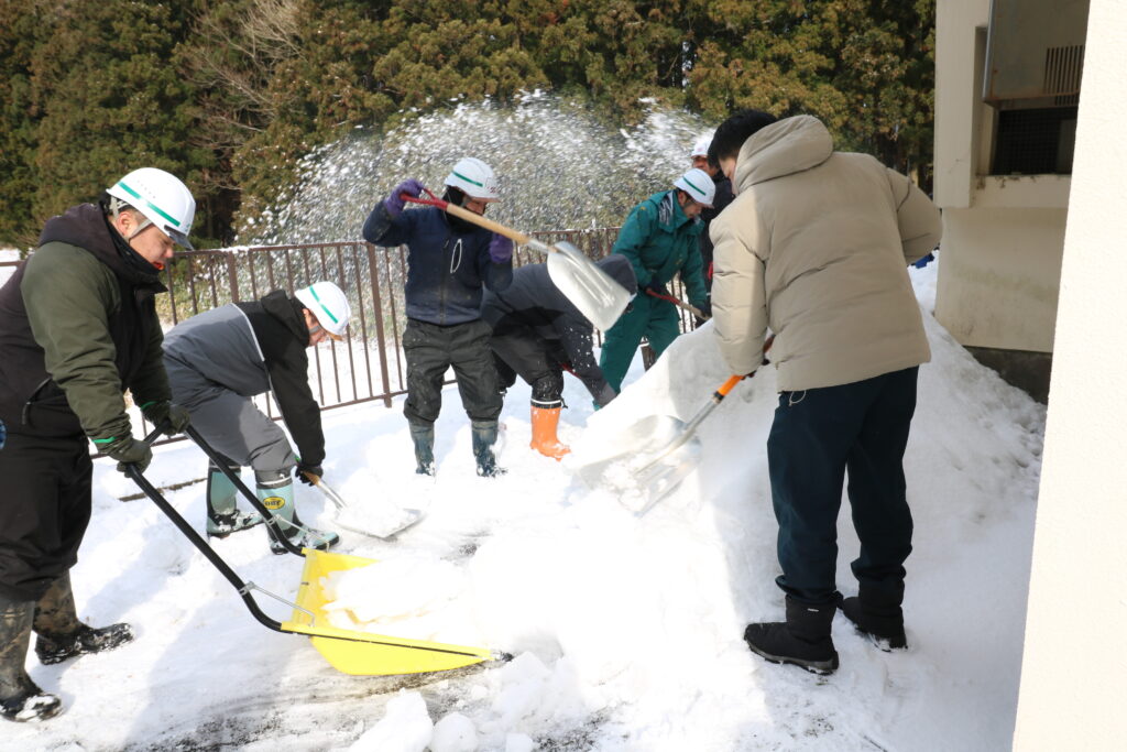 当日は弊社と三共グループ各社から約70名が参加し、市の施設である配水場や屋内運動施設周辺の除雪作業を行いました。